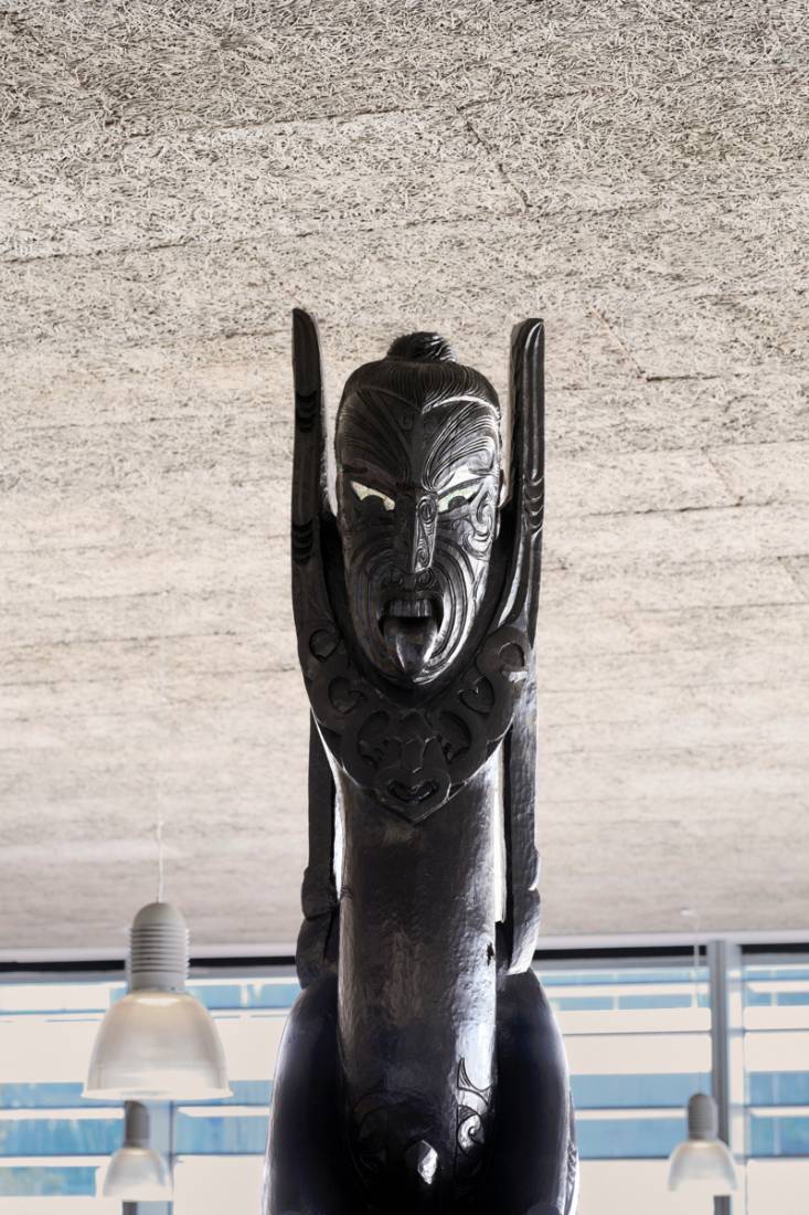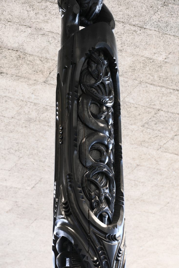 The pou was designed and carved by Master Carver Arekatera ‘Katz’ Maihi, a well-known and accomplished musician and Tā moko artist.