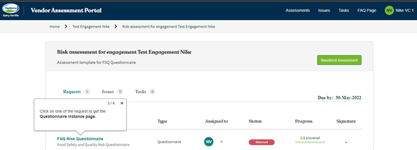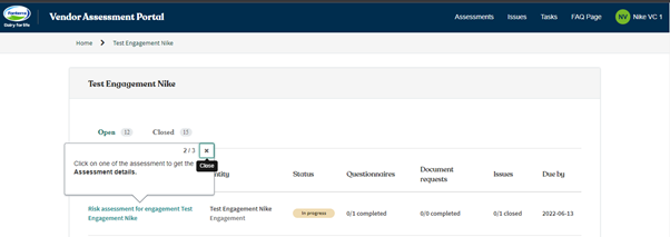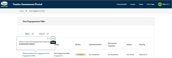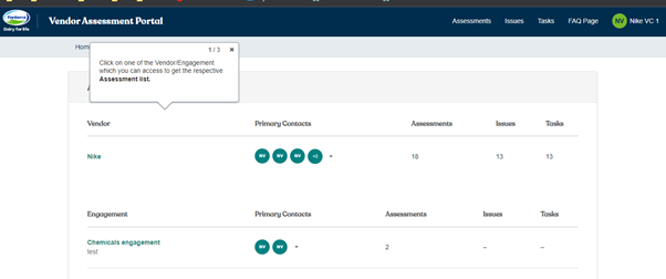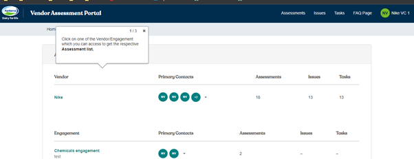 1. Click on one of the Vendor/Engagement which you can access to get the respective Assessment list.