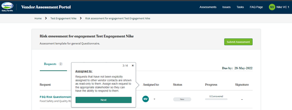 3. Assigned to: Requests that have not been explicitly assigned to other vendor contacts are shown as read-only to them. Assign each request to the appropriate stakeholder so they can have the ability to respond to them.